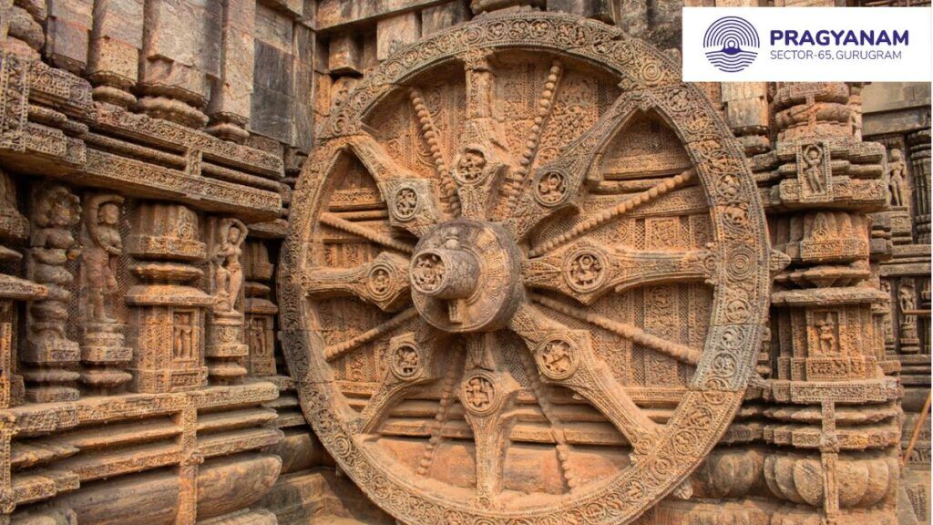 A 13th-century Hindu Temple in Konark, Odisha, is dedicated to the Sun God. Known for its intricate carvings and sculptures, the temple is attributed to King Narasimha deva. The architectural highlight of the temple is its 100-foot-high chariot with wheels and horses, all carved from stone.